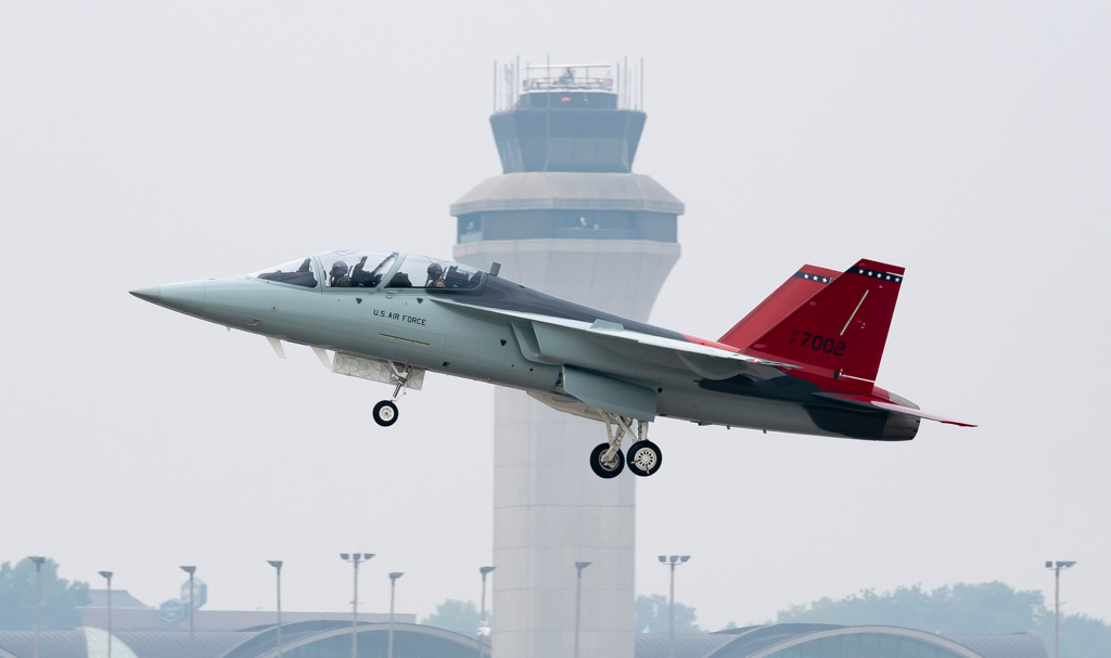 The Boeing T-7A EMD aircraft taking off in St. Louis, Missouri on 28 June. The T-7A is the US Air Force’s next generation fighter trainer. The test flight was an important milestone for a high-profile program that has recently come under criticism for delays and challenges with key technologies. Source: Boeing