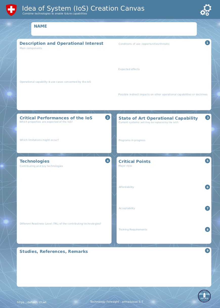 This canvas is supposed to guide you through your innovation journey. It will not make you innovative if it is not your mindset, but as every canvas, it is there to structure the thinking process and ensure that you cover the basics elements that could be challenged during the presentation of your IoS.