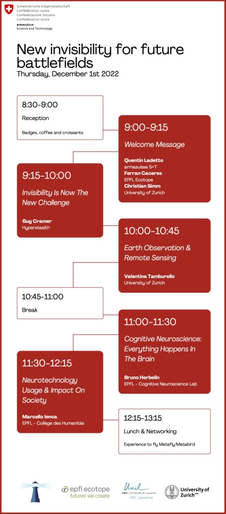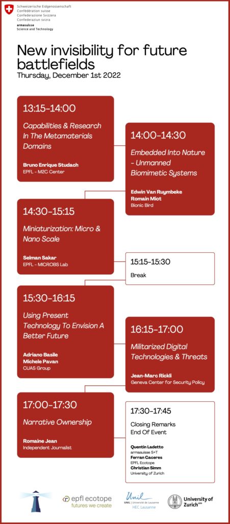| 5. | Capabilities and research in the metamaterials domains | Français | Bruno Enrique Studach | M2C – EPFL / CSEM |